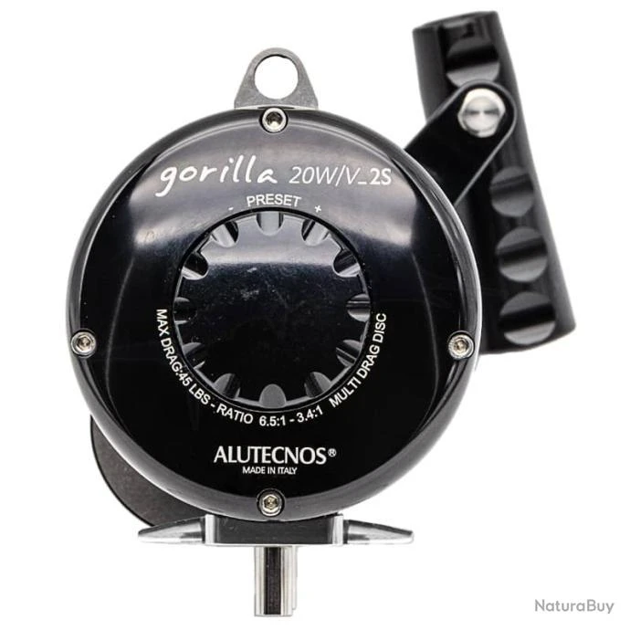 Le Gorilla 20V/W_2S dispose d’un pré-réglage du frein intégré et d’une plaque latérale au design ergonomique pour un confort maximal pendant l’action de pêche, Double Drag Disc (Multi Drag Disc) qui peut être réglé jusqu’à 45 lbs.