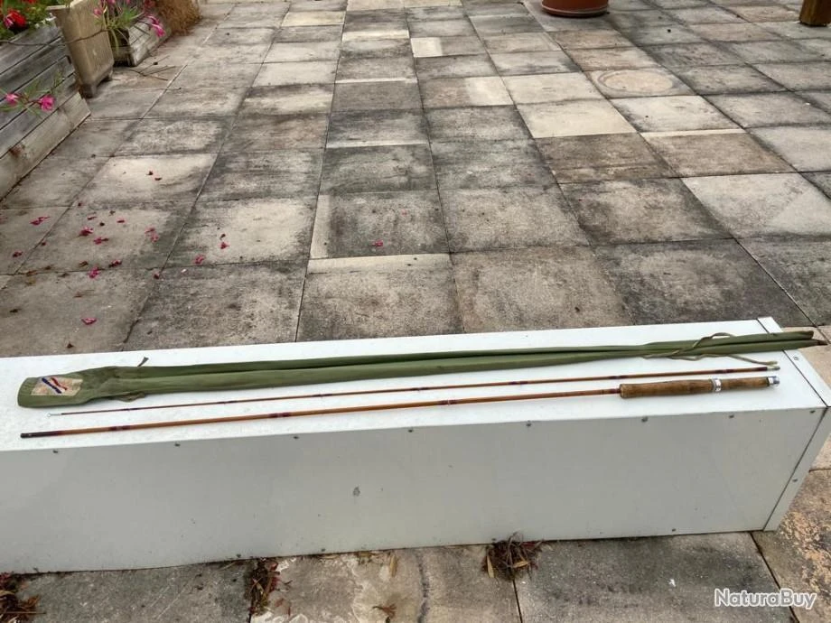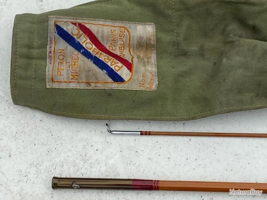 canne mouche, Pezon et Michel, bambou refendu, Parabolic spéciale, 2 brins, 8 pieds et demi, soie 4-5, état quasi neuf, Numéro 12106071. Fourreau d’origine.